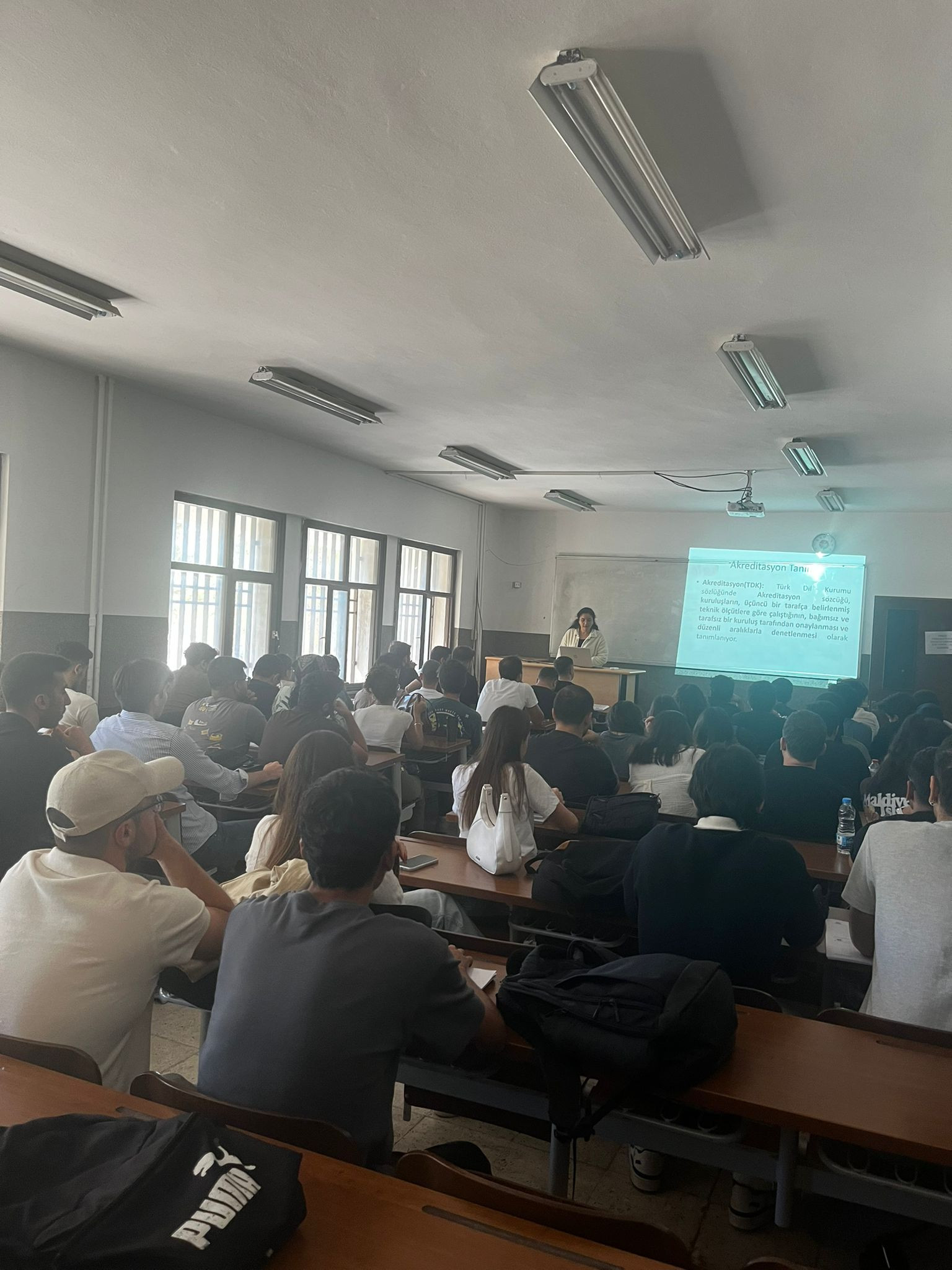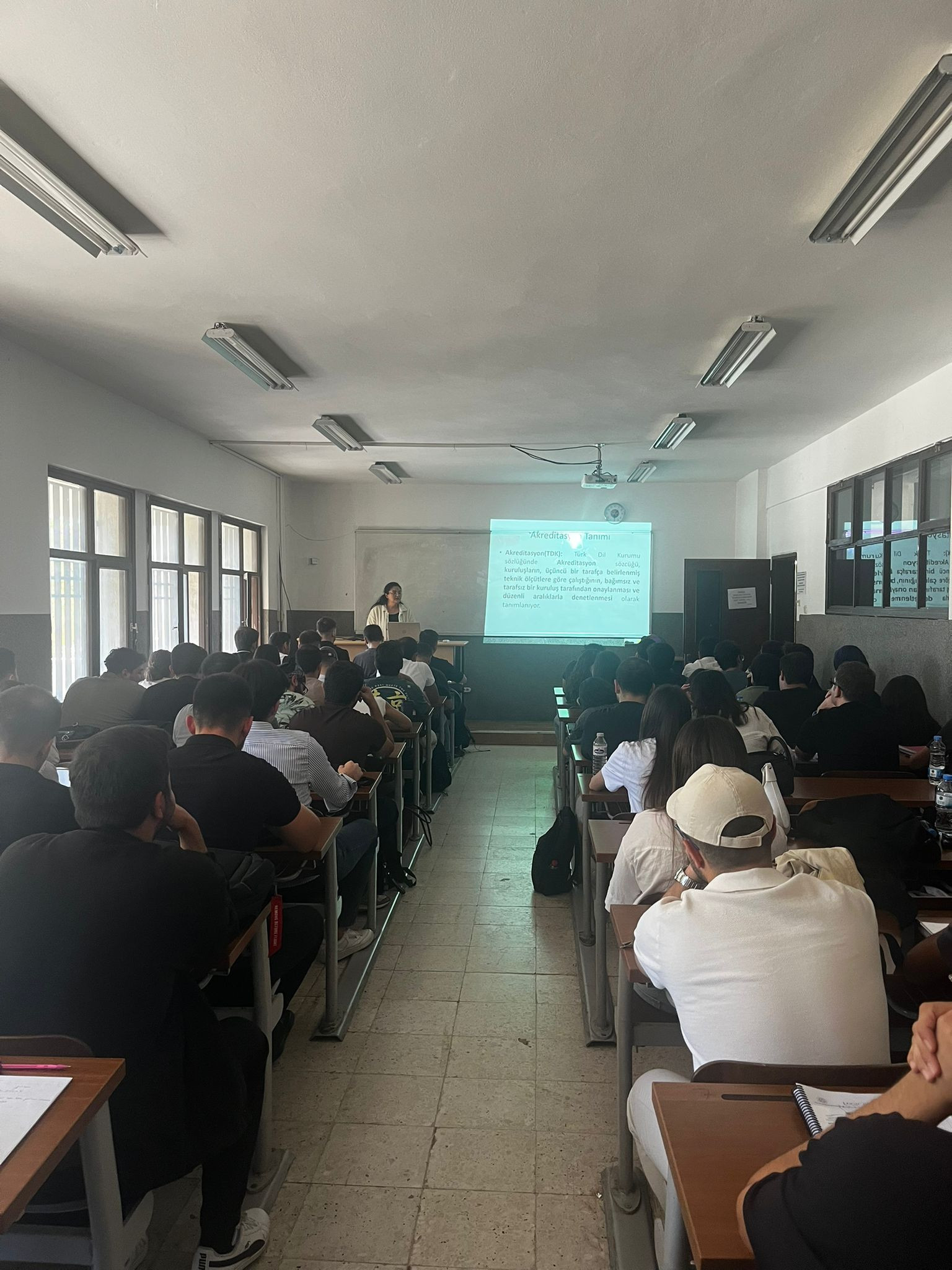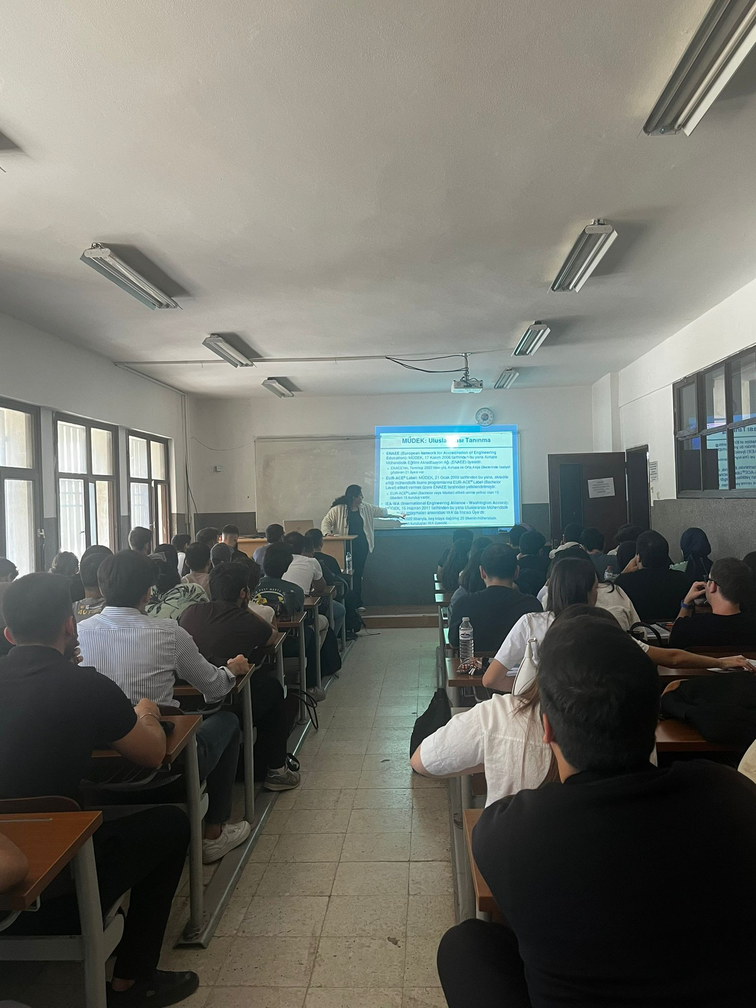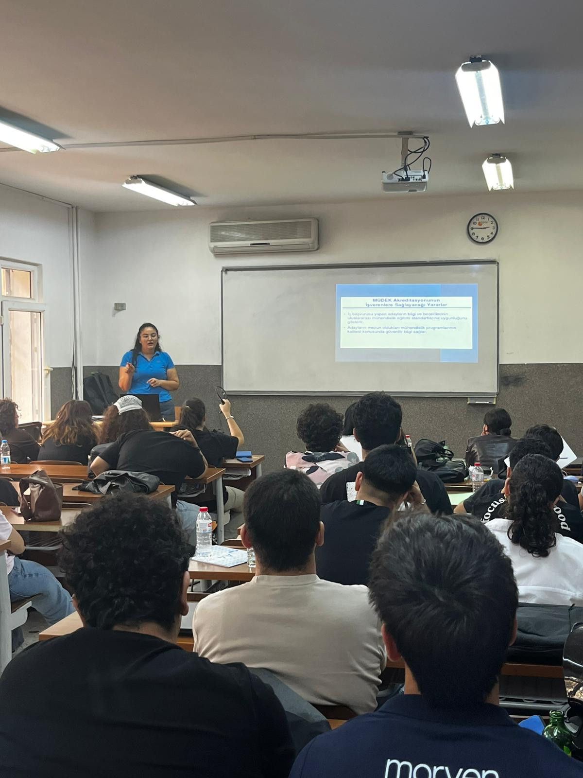 Bölümümüzde, MÜDEK ve Mühendislik Eğitim Programlarının Akreditasyonu konularında öğrencilerimize (iç paydaşlarımıza) bilgilendirme sunumları yapılmıştır. Sunum tarihleri ve sunum fotoğrafları aşağıda verilmiştir.